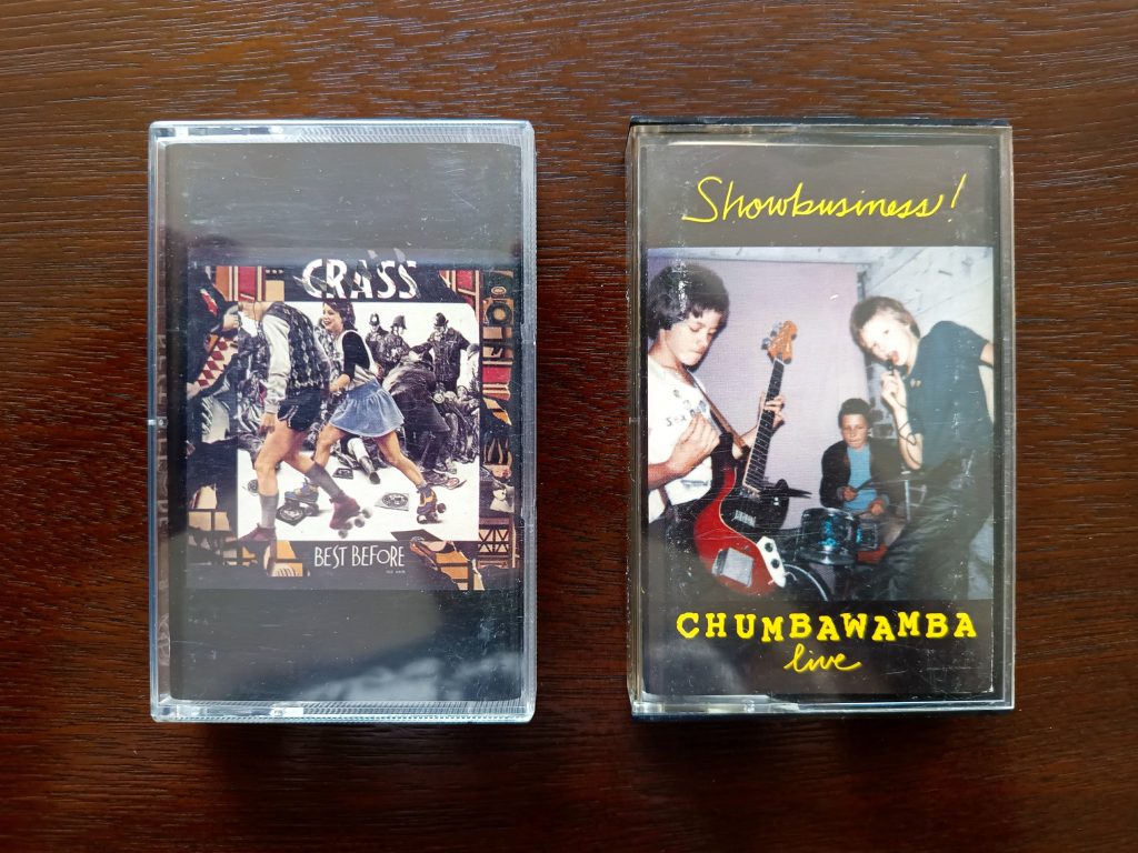 Carlos: Exactamente. Ustedes no vivían en Londres, yo por mi parte escuchaba música punk en una ciudad del sur de Chile y todo lo que se podía comprar en las disquerías era lo que editaban las multinacionales, no tenían nada de bandas independientes, solo teníamos a The Clash y Ramones. Estos discos (“London Calling” de The Clash y “Singles Going Steady” de Buzzcocks) son un recuerdo de nuestra juventud en común. Por ejemplo, tuve que viajar a Santiago para comprar estas cintas en el 93 o 94 porque The Clash para mí en ese momento era solo “The Story Of The Clash”. Y estaba pensando en eso porque Chumbawamba, en algún momento, tenía la costumbre, digamos, de criticar a algunas bandas. Hablé de esto con Danbert porque él fue uno de los principales culpables de lanzar pintura roja (contra Joe Strummer).