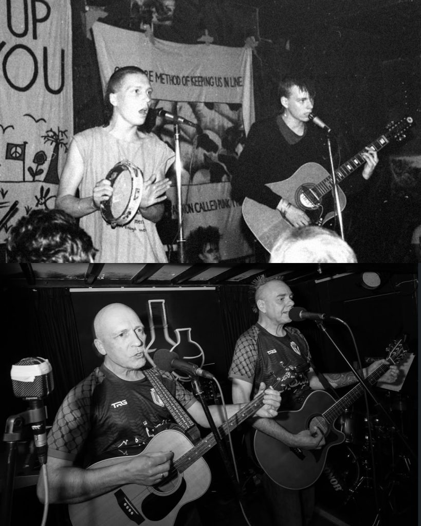 Carlos: Fue excelente, tanto las canciones originales como los covers. En el show interpretan una canción antigua de Passion Killers llamada “Why?”, que ahora se llama “Why Gaza?”, y me parece que esta nueva versión viene incluida en un álbum recopilatorio para Palestina llamado “Poppy Seeds: An International Benefit for Mutual Aid in Gaza”. Muchas gracias por hacer ese esfuerzo, creo que es una causa que necesita todo el apoyo que podamos brindarle y me refiero a ustedes, a mí, a los músicos y a los periodistas. En un episodio anterior del show de radio online mencioné la represión legal que el Gobierno británico lleva a cabo contra la organización Palestine Action. Ya hablé de eso previamente, pero quería preguntarles porque viven en el Reino Unido y no estoy al día con todos los cambios políticos que ocurren allá. ¿Creen que esas políticas de Keir Starmer y su apoyo a Donald Trump podrían tener un efecto electoral a largo plazo que beneficie a partidos de extrema derecha como Reform UK?